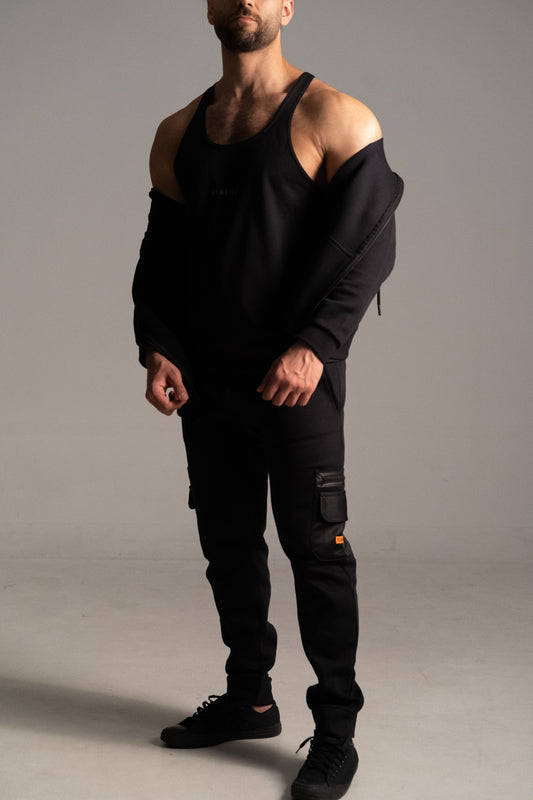 Graphite Black Print-work Men's Athletic Tanks by Dumbell Wear